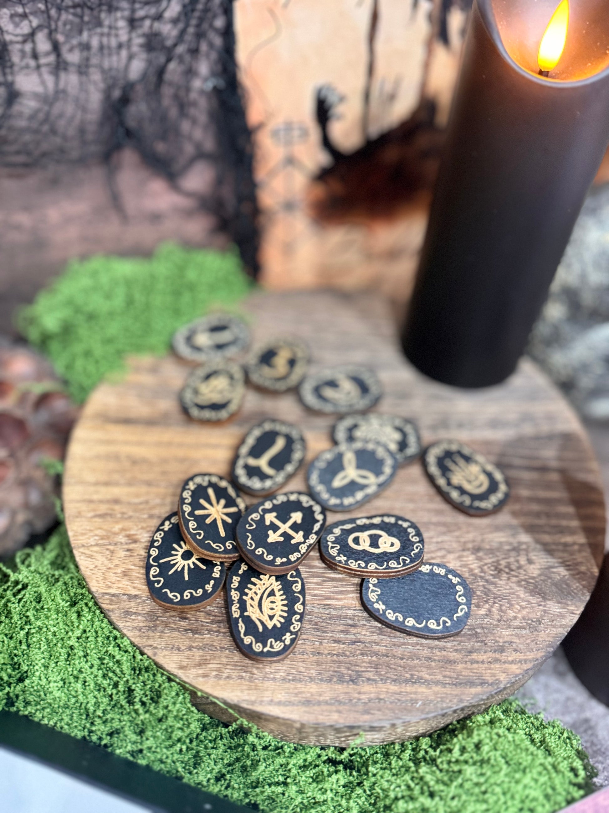 A powerful divination tool for guidance, spells, and connecting with ancient wisdom. Each rune carries its own magic, ready to aid you in rituals, meditation, or daily intuition work. 🔮✨